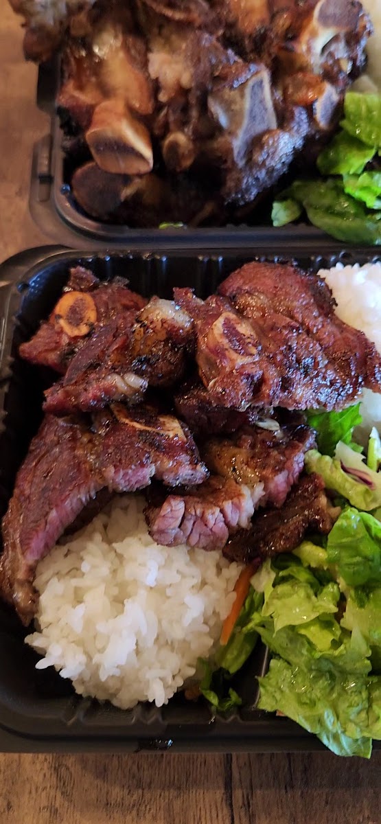 WOW this place is phenomenal. I came to try the giant beef ribs, which as a plate for just $18 is a huge portion of caveman style ribs and super charcoal - grill flavored meat. We tried a chicken/steak combo and it was absolutely amazing. One of the better steaks I've had, and yes it feels like you get a whole steak for $13, marinated to perfection. Their Pani Popo dessert is a must try too. Hawaiian rolls soaked in a creamy coconut sauce, warm and delicious. All in all huge affordable portions to satisfy your meat cravings.