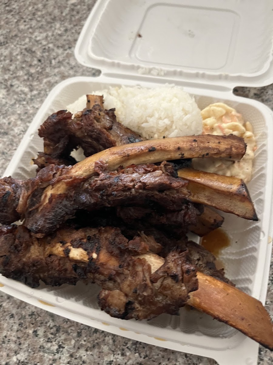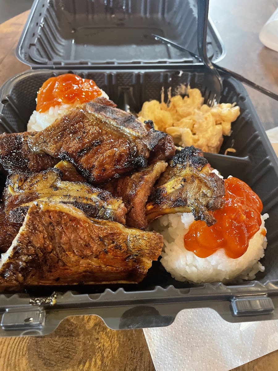 First time here. I saw a video review and o knew the shopping center, as I've eaten at other restaurants here. I initially didn't notice this place as the switched locations in the complex. I am a fan of Hawaiian food and the smells in the air were excellent. What was surprising to me was, what I originally expected and what I received were miles apart. What I was expecting was 1 or 2 beef ribs at most with 2 sides What I received, was way above my expectations. There were 6 fullsize beef ribs, not skimpy at all. Perfectly grilled with the flavor of Kalbi ribs. Served with 2 sides, my choice of white rice and macaroni salad. The Mac salad was sweet and flavorful. Rice was perfect. The problem was I did not want to miss out on even a morsel if the ribs. I barely ate half the sides, choosing to eat every single bite of the ribs. This plate could have easily fed 2 but I pigged out. The man behind the counter was very knowledgeable and professionally. Good came out in a timely manner. I would recommend calling ahead as I could see this place getting very busy. I cannot wait to go back and try all the menu. I highly recommend this place